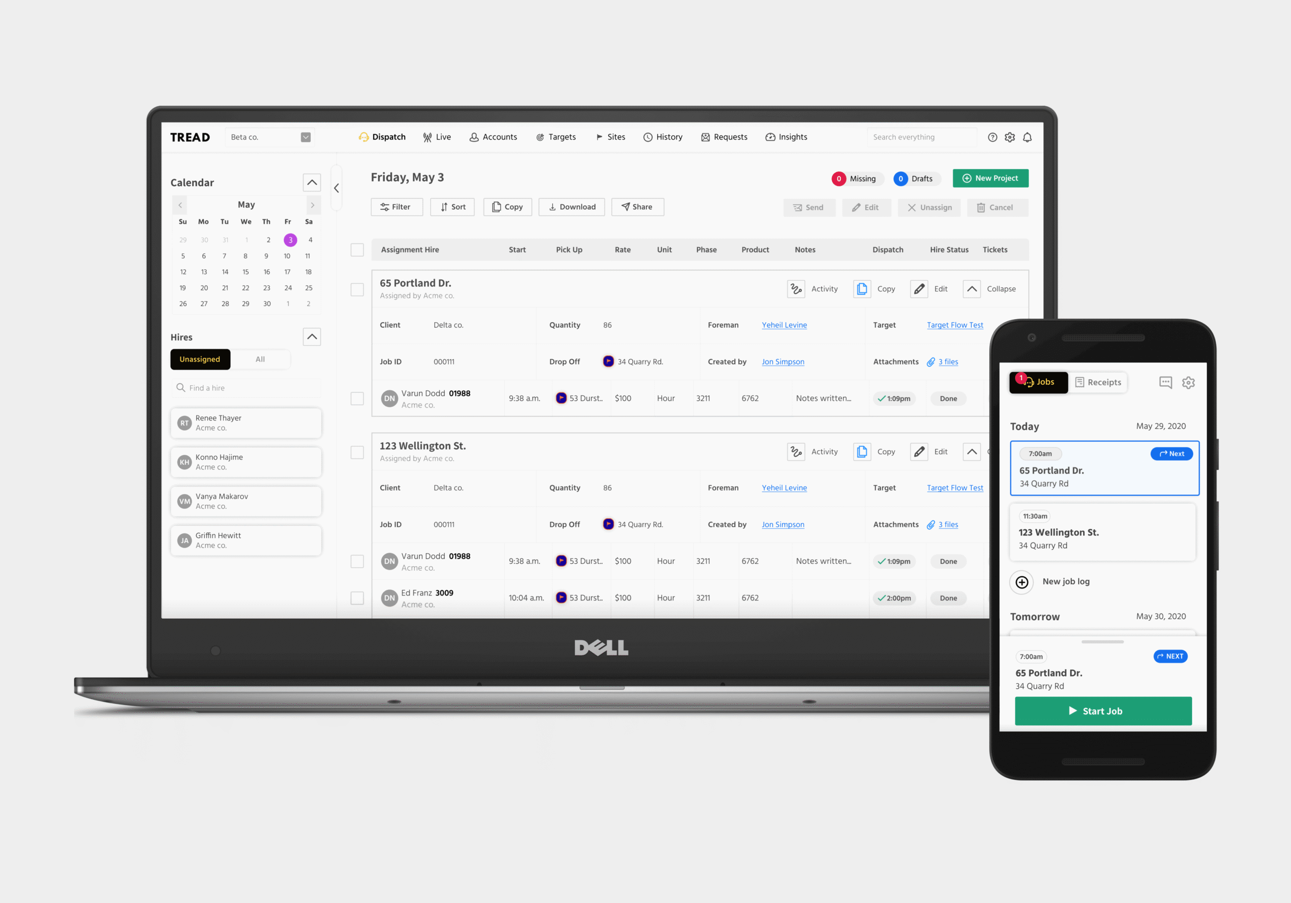 The mission-critical collaborative tools Tread delivers allow contractors, material producers, fleets, brokers, and operators to work together as a single team and share relevant information in real-time, while removing the need for hundreds of touchpoints from the movement and reconciliation of material logistics. The platform also removes the need for paper invoicing, and fulfills the E-ticketing needs of customers. The outcome is increased performance of the materials supply chain, easier and more accurate reconciliation, and faster and more profitable delivery of the materials that every site relies on.